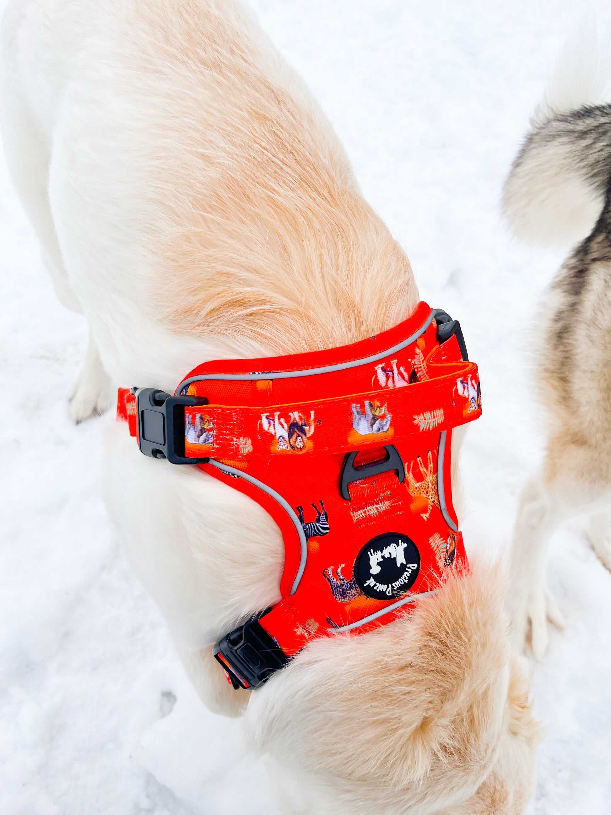 Our Explorer Pawz harnesses are equipped with three locking clips, ensuring enhanced security perfect for dogs that don’t like things going over their head. The reflective front and back strips provide an additional safety measure, making them ideal for late walks and urban environments. The back handle facilitates easy retrieval of your dog in emergencies.