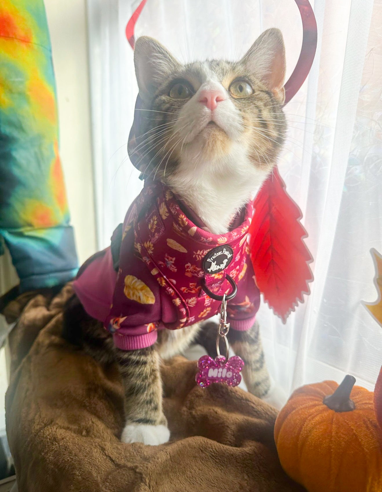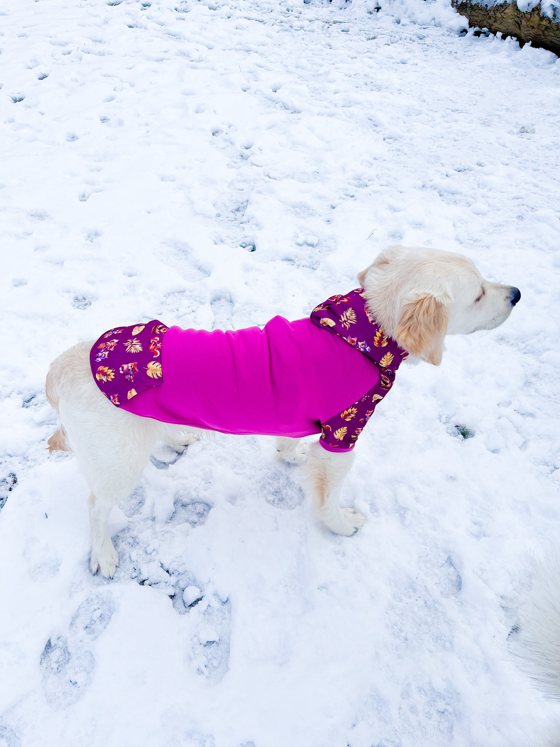 Our hoodies are very cozy and comfortable and can be worn over or under a harness as they have a small hole to pop in them to put the harness d ring to , making them ideal for autumn and winter walks or simply keeping warm indoors.